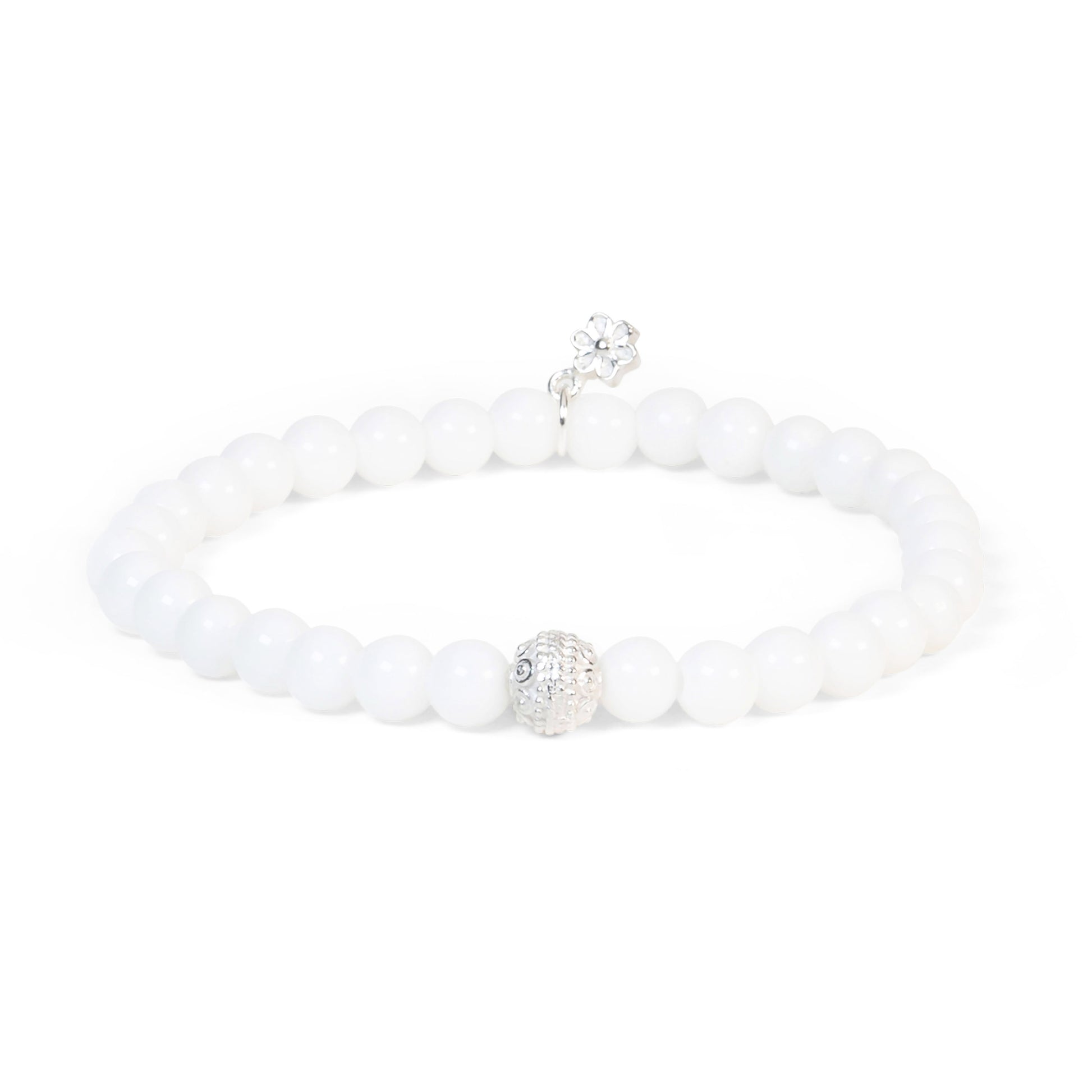 Das Armband Achat „Calm" ist ein handgefertigtes Produkt aus weissem Friedensachat und kunstvoll verzierten 925 Sterling Silberteilen. Es vermittelt Ruhe und Ausgeglichenheit und steigert die Toleranz. Das Armband ist ein perfektes Geschenk oder ein Schmuckstück für besondere Anlässe. Es wird sehr gerne mit den Armbändern "Cosy" und "Charity" kombiniert.