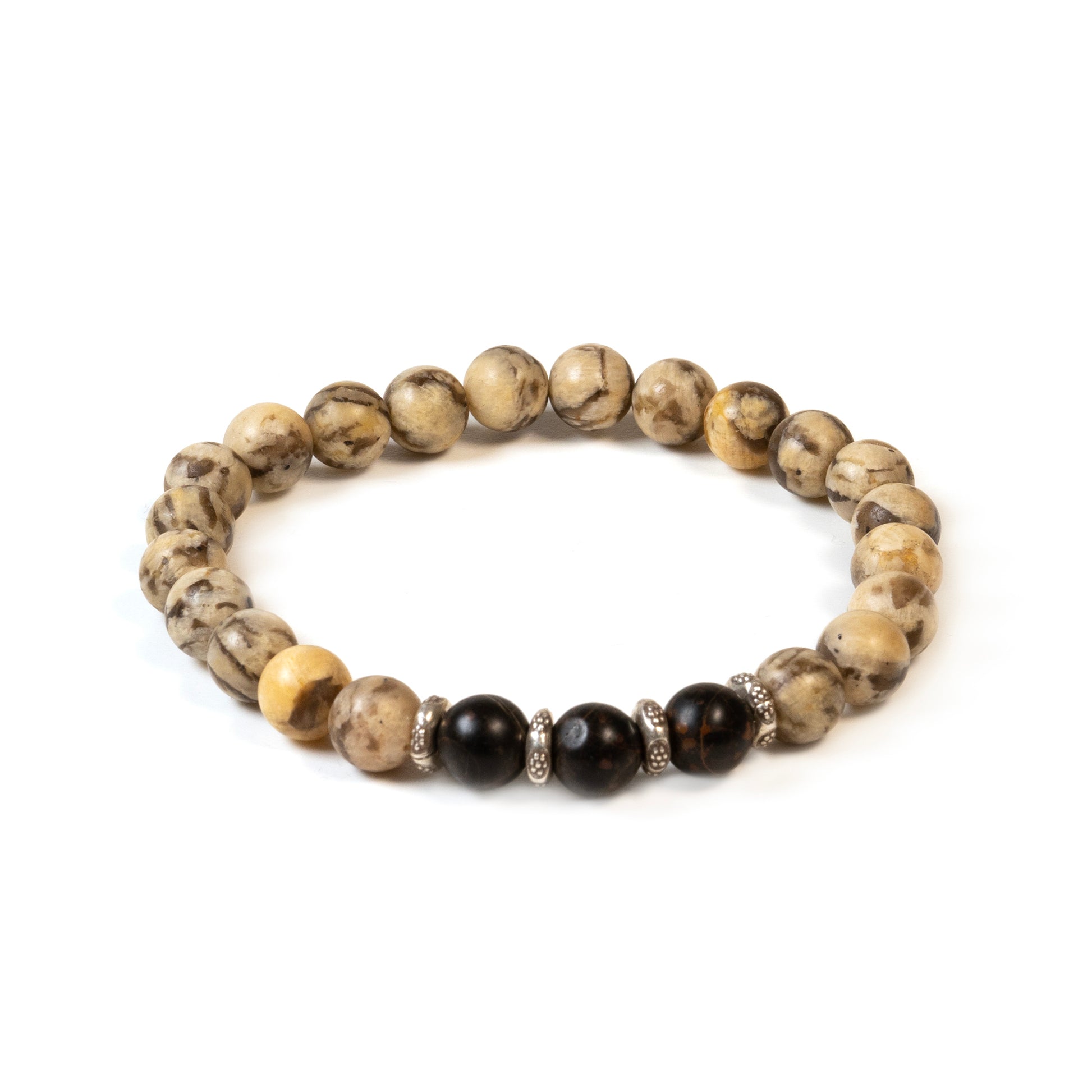 Jeder Naturstein ist ein einzigartiges Unikat, das von der Natur über Millionen von Jahren geformt wurde. Feine Unebenheiten, Farbunterschiede oder Einschlüsse sind Teil des besonderen Charmes des Natursteins und stellen keinen Qualitätsmangel dar. Jedes Schmuckstück aus Edelsteinen ist daher einzigartig und unterscheidet sich in Farbe und individuellen Merkmalen. Echter Silberschmuck entwickelt im Laufe der Zeit eine dunklere Patina durch Oxidation, was seine Echtheit bestätigt. Bei unserem Herrenschmuck ist diese Schwärzung sogar gewünscht und bewusst erzeugt, um einen rustikalen Used-Look zu erzielen. Unregelmäßigkeiten in oxidierten Silberelementen tragen zum individuellen Charakter des Schmucks bei und machen jedes Stück zu einem einzigartigen Unikat. Weitere Informationen zur Herkunft, Wirkung und Pflege der Materialien findest du unter "About".