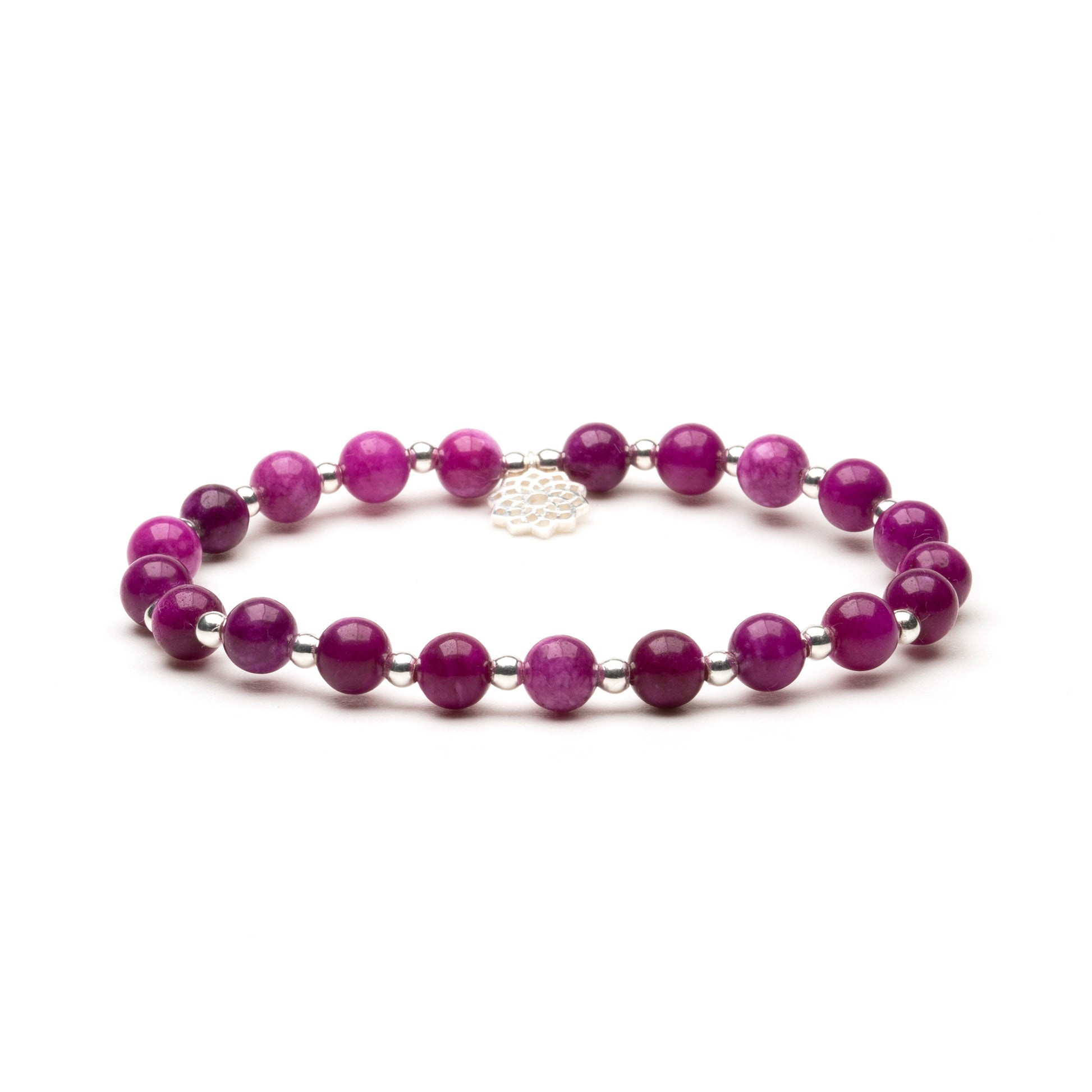 Unser handgefertigtes Armband "Mindful" besteht aus leuchtenden, beerenfarbenen Sugulith Jaspis Perlen und glänzenden 925 Sterling Silberelementen. Sugulith fördert die Achtsamkeit und Entspannung, weshalb das Armband oft in Kombination mit unserem Armband "Relax" getragen wird. Die beiden Armbänder ergänzen sich perfekt und schaffen eine harmonische Ausstrahlung. Trage das Armband "Mindful" mit Stolz und lasse es dich an deine innere Ruhe erinnern.