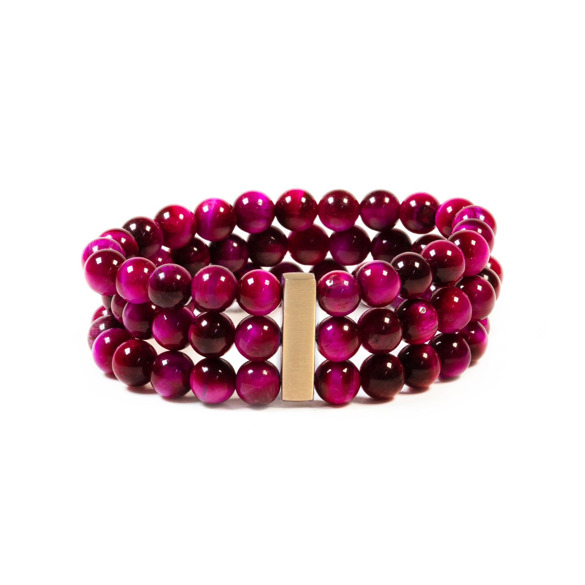 Das exklusive Armband "Resolution" wird mit viel Liebe zum Detail aus dunkelmagentafarbenem Tigerauge und einem edlen 925 Sterling Silber Verbinder gefertigt. Tigerauge ist bekannt dafür, die Entschlossenheit zu stärken und dabei zu helfen, Ziele zu erreichen. Dieses einzigartige Schmuckstück zieht sofort alle Blicke auf sich und verleiht jedem Outfit eine besondere Note. Trage es als tägliche Erinnerung an deine Stärke und den Willen, deine Ziele zu verwirklichen.