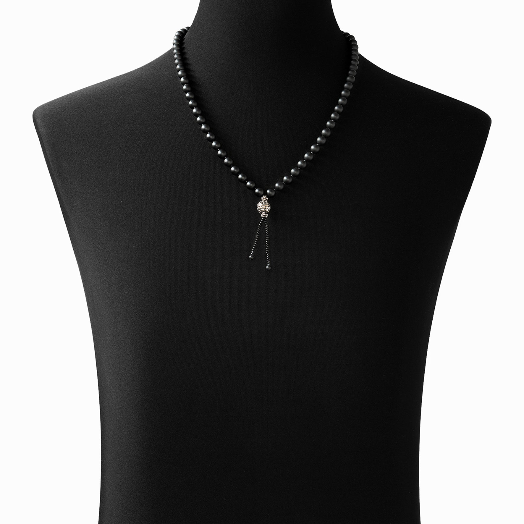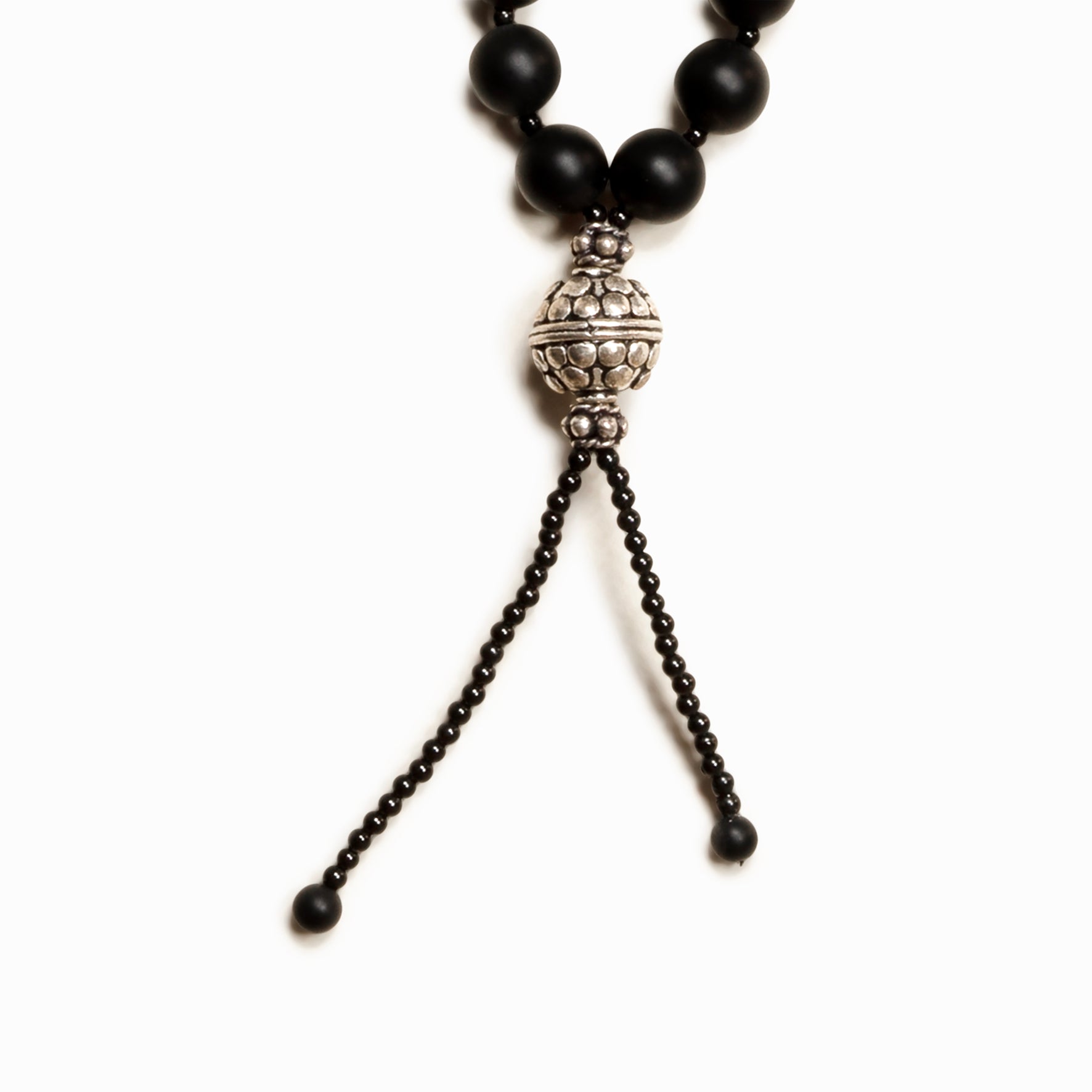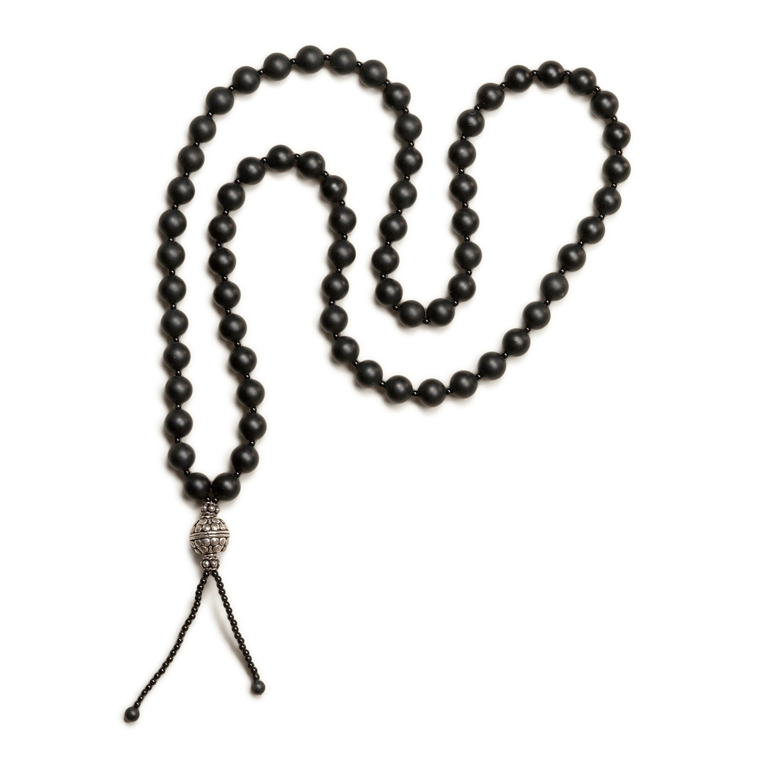 Diese handgefertigte Herrenkette besteht aus schwarzen Onyxperlen und Sterling Silber Teilen. Das Highlight dieser Kette ist eine imposante 925 Sterling Silber Guruperle. Onyx wird mit Kraft, Selbstvertrauen und Energie in Verbindung gebracht. Die Kombination aus den schwarzen Perlen und dem glänzenden Silber verleiht dieser Kette einen maskulinen und edlen Look. Trage diese Kette als Erinnerung daran, dass du die Energie hast, deine Ziele zu erreichen.