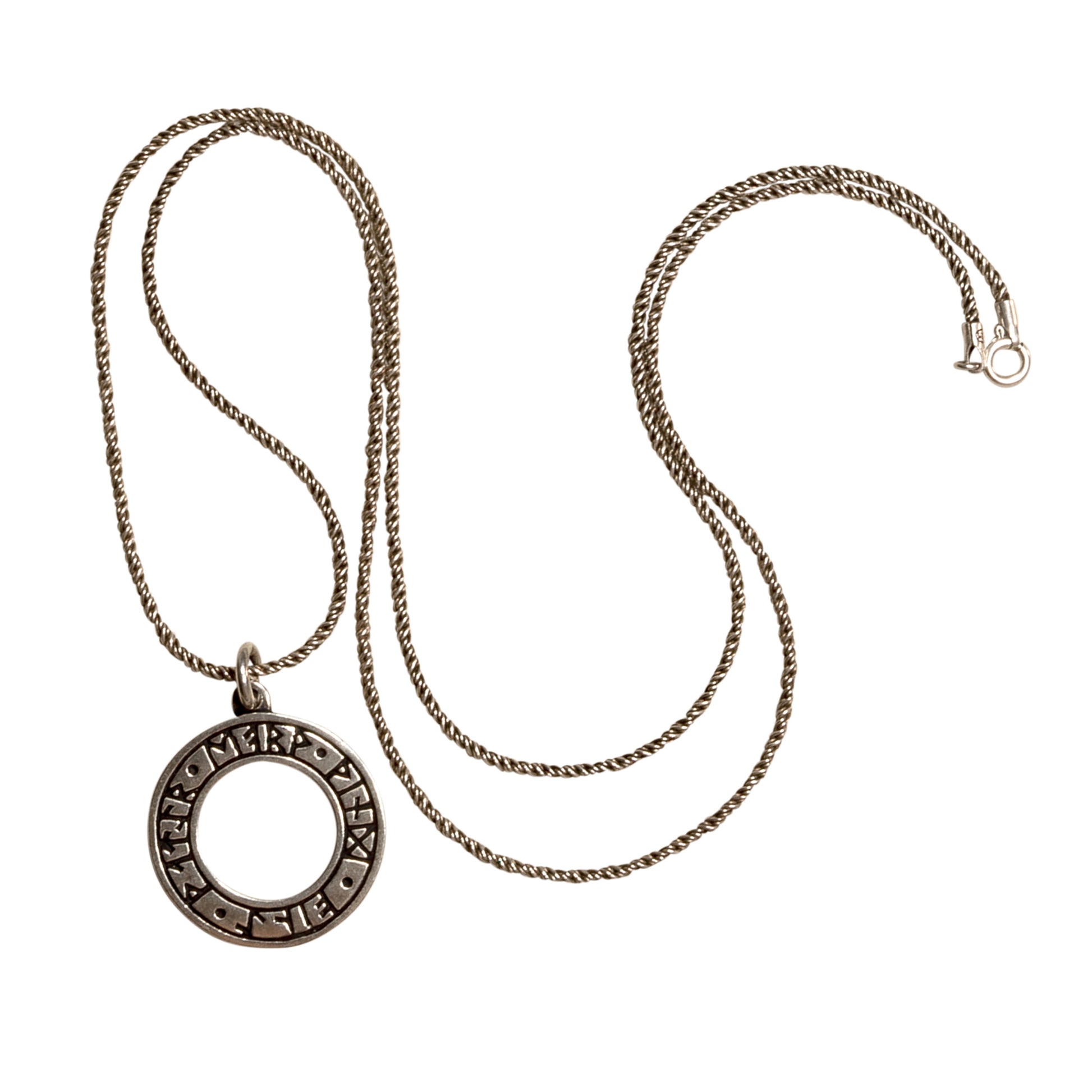 Diese 925 Sterling Silberkette mit einem 925 Sterling Silber Runenanhänger ist ein kraftvolles Schmuckstück, das die mystische Welt der Wikinger verkörpert. Die Runen sind die ältesten Schriftzeichen dieser Kultur und dienten als Schutz- oder Zauberzeichen. Jede Rune symbolisiert eine einzigartige Facette von Leben, Stärke und Weisheit. Das Runenrad verkörpert den ewigen Fluss der Lebensenergien und das Schutz und Stärke auf deiner eigenen Lebensreise.
