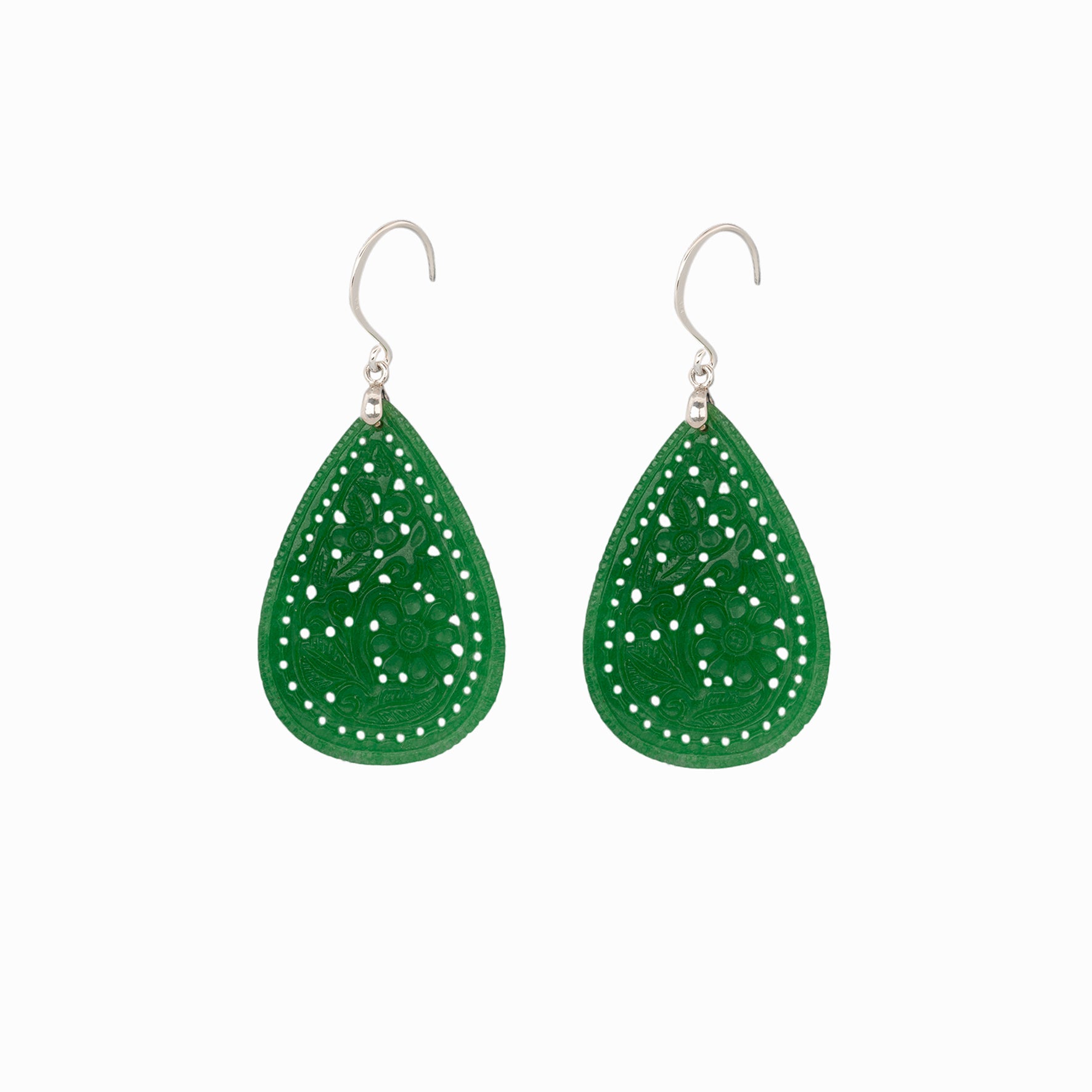 Unsere handgefertigten Ohrpendler aus 925 Sterling Silber und kunstvoll handgeschnitztem Quarz-Ornament in einem intensiven Grünton sind ein wahrer Blickfang. Die eleganten 925 Sterling Silber Ohrhaken verleihen ihnen eine edle Note. Jedes Stück ist individuell gestaltet und strahlt eine verspielte Leichtigkeit aus. Die Ohrpendler sind das perfekte Accessoire, um jedem Outfit eine besondere Note zu verleihen. Ein Must-Have für alle, die nach einem stilvollen Schmuckstück suchen.