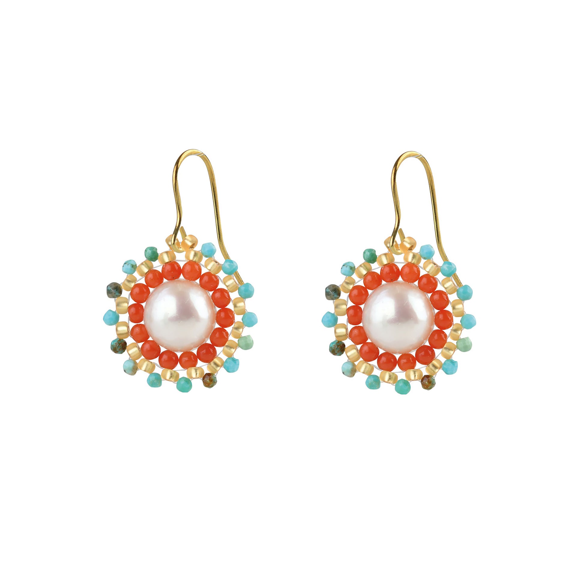 Diese zierlichen Boho-Ohrpendler sind ein Ausdruck von Freiheit und Lebensfreude. Sie bestehen aus einer großen Süßwasserperle, kombiniert mit leuchtend roten Edelkoralleperlen und strahlendem Türkis. Jedes Element ist sorgfältig handgenäht, was den Ohrringen eine besondere Note verleiht. Die vergoldeten Ohrhaken fügen einen Hauch von Eleganz hinzu und unterstreichen die natürliche Schönheit der Perlen und Edelsteine. Diese Ohrringe erinnern an das Meer und vermitteln ein Gefühl von Leichtigkeit und Freiheit. Trage diese Ohrringe und lasse dich von ihrer Schönheit und Einfachheit inspirieren.